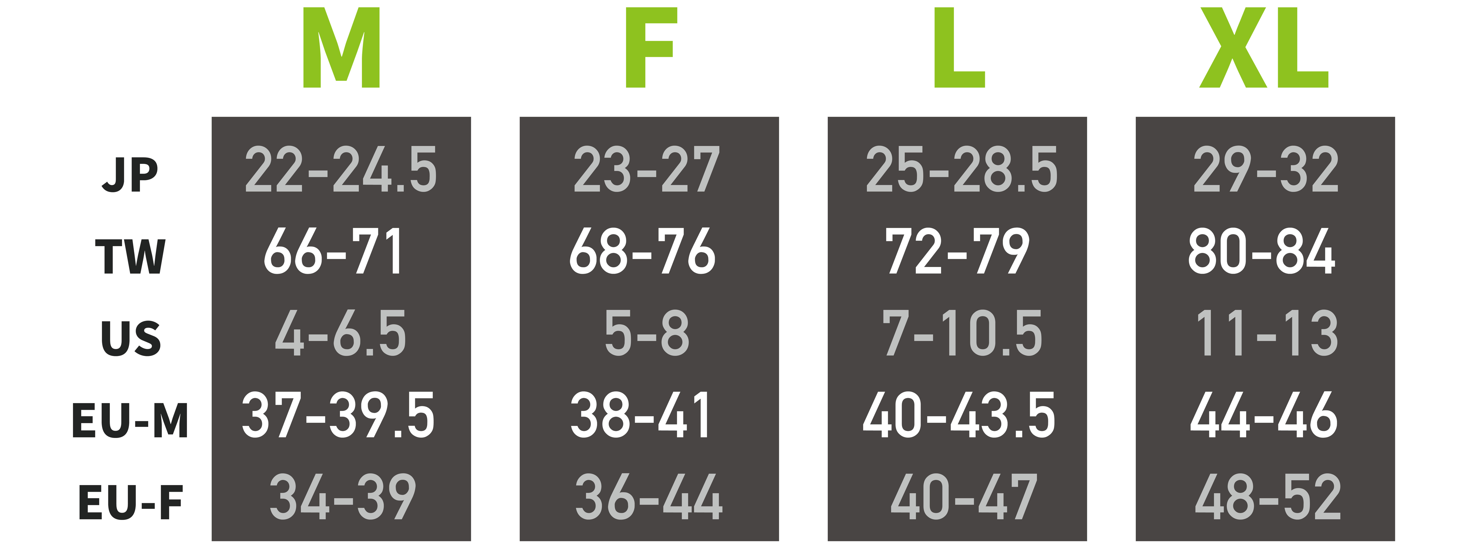 襪子細分四種尺寸最Fit您的雙腳