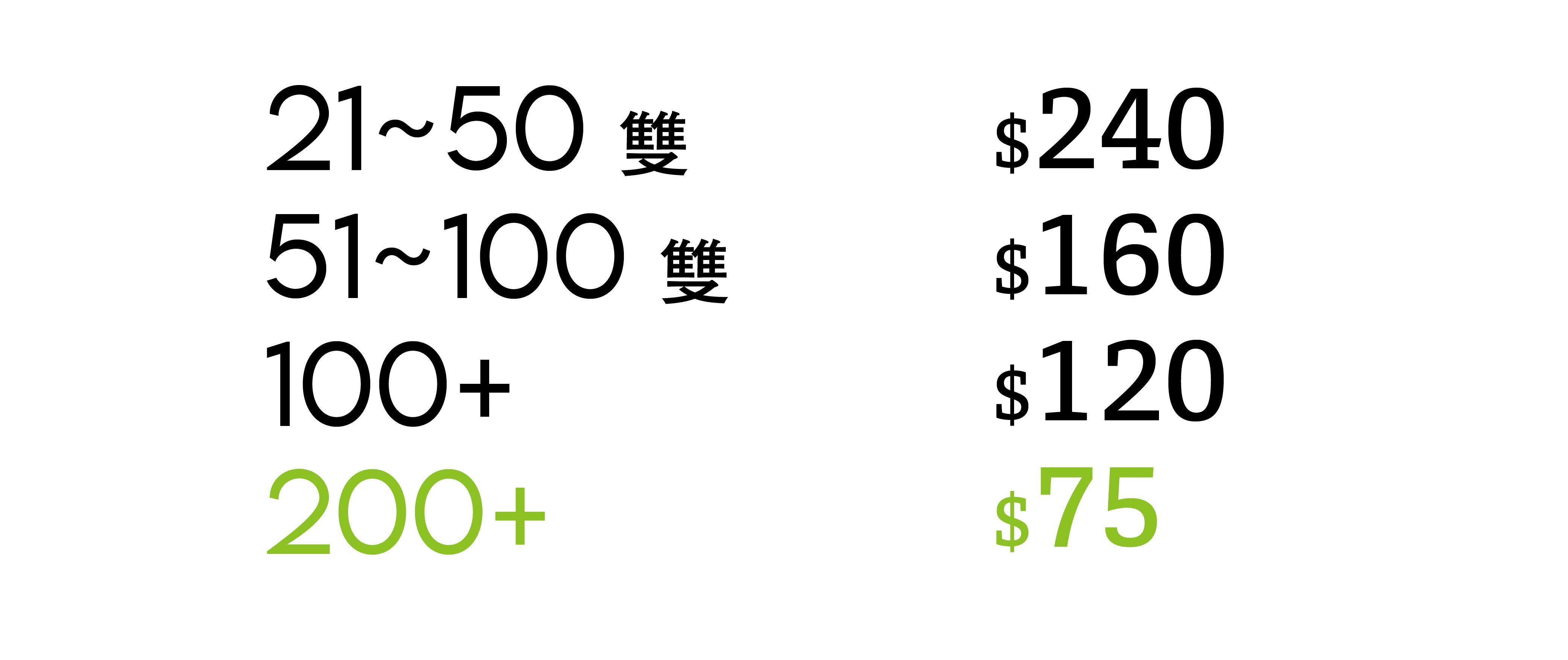 *若客製襪圖案需刺繡,同規格最低量為200雙*